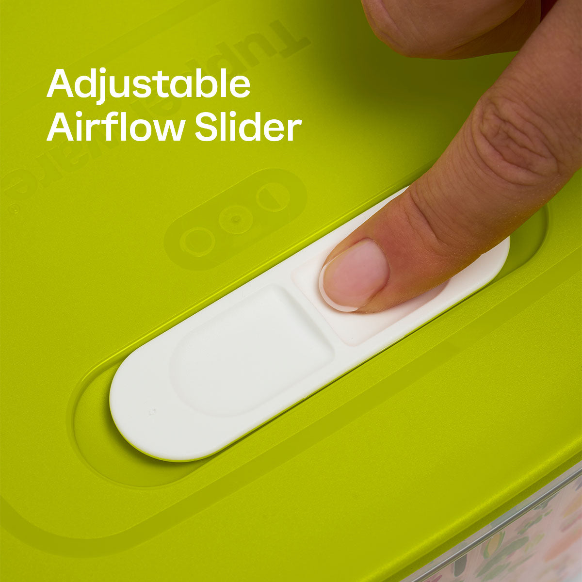 - Optimal storage conditions: 3-position slider adapts vent in lid to various vegetables and fruits and works with airflow pattern in base.