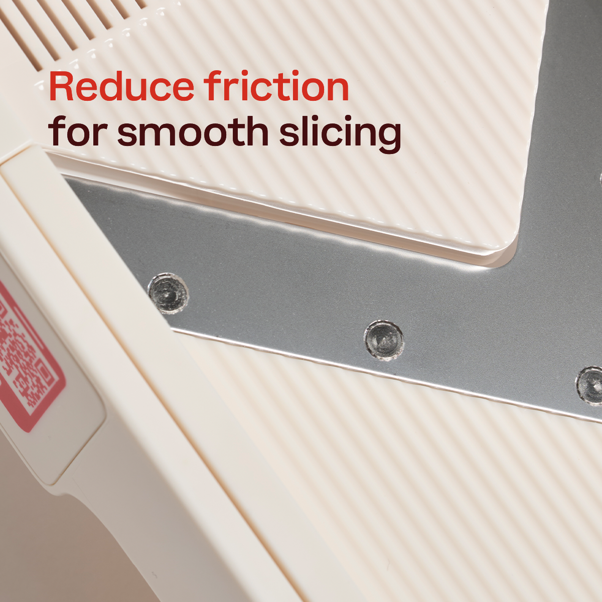 - Smooth slicing: Grooved surface reduces friction, and V shape blade reduces skipping.