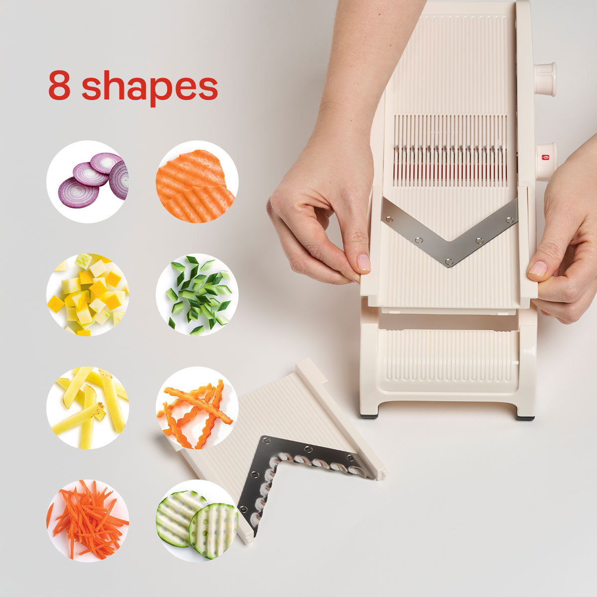 Included with each slicer are tips on how to cut eight different shapes and nine precise thicknesses. From flat slices, sticks, diamonds, and waffles to cubes, julienne, crinkle slices, and crinkle sticks, the possibilities are endless.